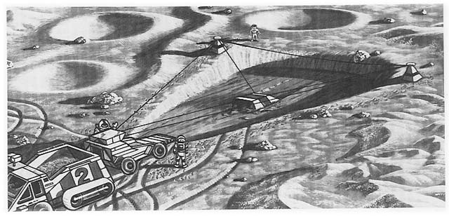 In this section I propose a modest lunar mining method. It illustrates the problems to be expected in lunar mining and how they might be solved. While the method is quite feasible, it is, more importantly, a useful baseline system against which to test other, possibly better, methods. Our study group proposed the slusher to stimulate discussion of how a lunar mining operation might be successfully accomplished. Critics of the slusher system are invited to propose better methods. The group noted that while nonterrestrial mining has been a vital part of past space manufacturing proposals, no one has proposed a lunar mining system in any real detail (Carrier 1979, Williams et al. 1979). The group considered it essential that the design of actual. workable, and specific lunar mining methods begin immediately.