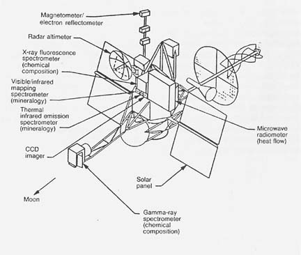 Using x-ray and gamma-ray spectrometers, at a resolution of 1 to a few kilometers, this mission would provide a map of the chemical constituents of the lunar surface. If, as has been speculated, there are concentrations of water in permanently shadowed regions near the lunar poles, the gamma-ray device should be able to detect them. These data will provide information on the global distribution of rock and soil compositions but will not pinpoint small ore deposits, because the lunar regolith has been thoroughly mixed by eons of meteoroid bombardment.