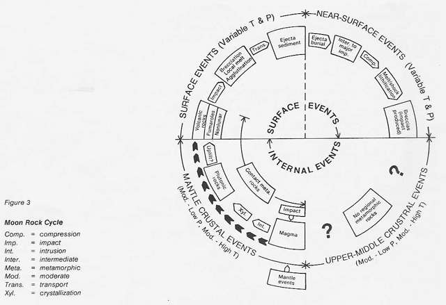Another approach to evaluating possible lunar material resources is to compare the rock cycle of the Moon (fig. 3) to that of the Earth