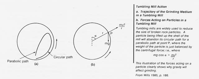 Grinding particles, either dry or submerged in liquids (Austin, Klimpel, and Luchie 1984; Wills 1985, ch. 7), is usually the final particle size reduction step. It is not obvious how significant the effects on grinding of a low-gravity,. high-vacuum environment may be. In the most widely used tumbling mills, particle size reduction is accomplished primarily by impact. Gravity forces enter very explicitly into the design of these tumbling mills (Wills 1985, p. 186). Hence, an analysis of gravitational effects should be straightforward. Such an analysis would be worthwhile because it addresses the most energy-consuming aspect, by far, of size reduction operations. Wet grinding, almost always preferred, clearly would pose problems in logistics (delivering or producing the liquid) and in containing and recovering the liquid.