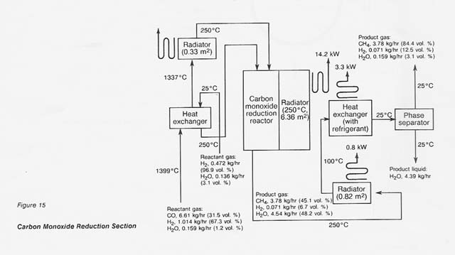 The process flowsheet for this section is shown in figure 15. The operating temperature of 250°C is used as a conservative value. Operating at higher temperature offers a modest advantage in reducing radiator weight.