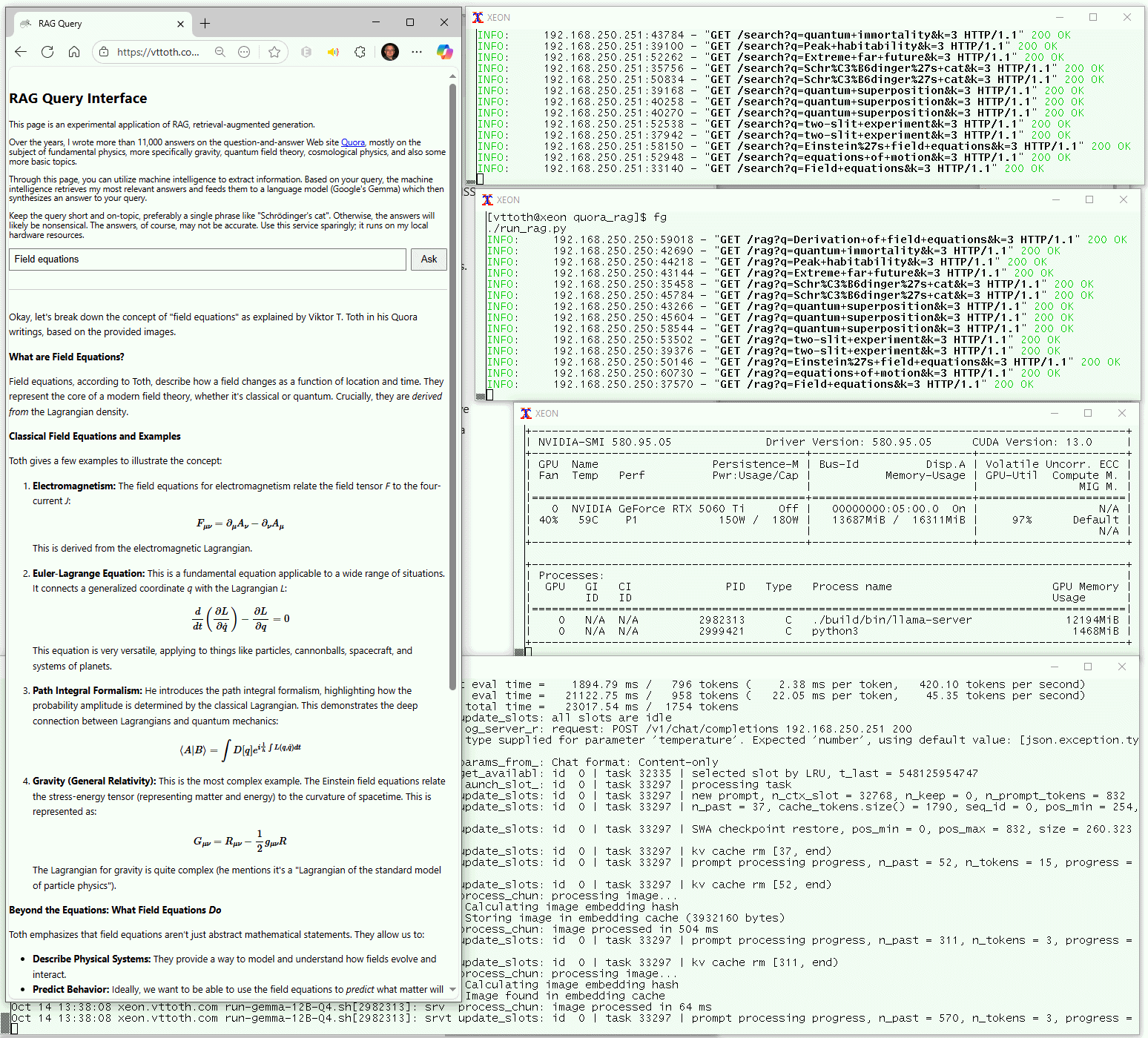 Over the years, I wrote over 11,000 answers on Quora, the vast majority of them on the subject of theoretical physics, mostly gravity, quantum field theory, cosmology, and the basic fundamentals. What if, I asked, I can organize my Quora answers into a suitable database for use in a custom RAG solution?